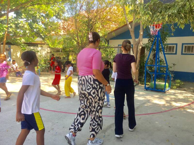 Nach dem Simkartenkauf sind wir ins CMTC, also in unsere Einsatzstelle gegangen und haben dort die Kinder kennengelernt; sie haben für uns das Lied „Welcome to the family“ gesungen, was gut die Gastfreundschaft und Offenheit der Menschen zeigt. Wir haben dann noch mit den Kindern geplaudert - auch wenn es eher eine halb Tetun, halb Englische Konversation war. Die Kinder sind sehr lebensfroh und spielen gerne - vorallem Fußball und Basketball (siehe Bilder).