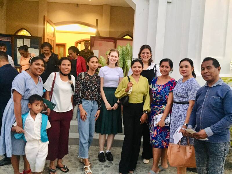 Neben der ganzen Arbeit erleben wir natürlich auch viele spassige Sachen; so waren wir zum Beispiel auf der 50. Religiöses Leben- Feier einer Nonne und haben gemeinsam gegessen und vor allem viel getanzt. Mit den Nonnen ist es eine große Freude zu Tanzen und sie freuen sich immer sehr, wenn sie uns ihre timorlesischen Tänze beibringen können, auch wenn wir uns noch sehr blöd anstellen. Auf dieser Feier ist uns auch - mal wieder - ein sehr lustiges sprachliches Missverständnis passiert. Die Männer müssen dabei das Feuer bewachen während die Frauen schonmal den Reis und das Gemüse verteilen. Bei solchen Feierlichkeiten zeigt sich die klare Rollenverteilung extremer denn je; zum Beispiel trinken ausschließlich die Männer Alkohol, weil es „gut für ihre Gesundheit“ ist, „für uns Frauen ist allerdings zu scharf“.