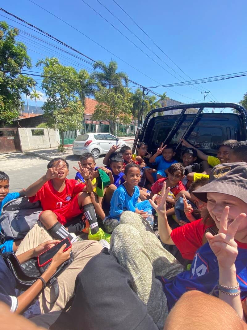 Am Donnerstag Nachmittag sind wir dann allesamt zu einer anderen Schule etwas außerhalb gefahren und saßen mit der Jungsmannschaft auf der offenen Fläche eines Trucks. Das war sowohl für uns als auch für die Kinder ein Heidenspass!!